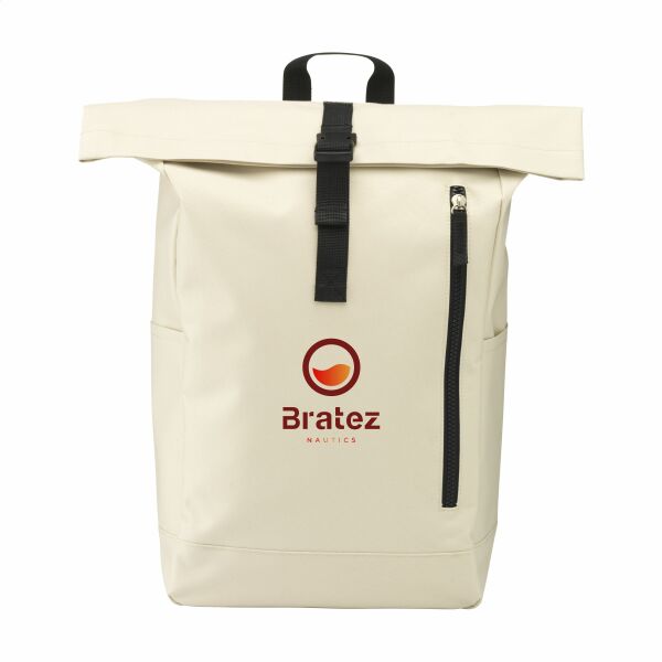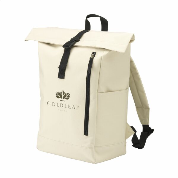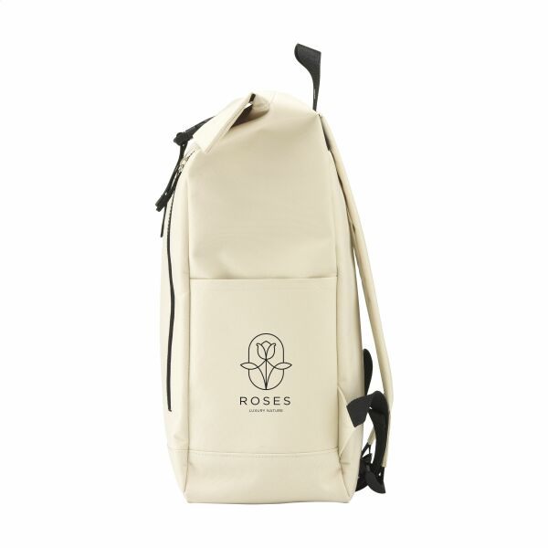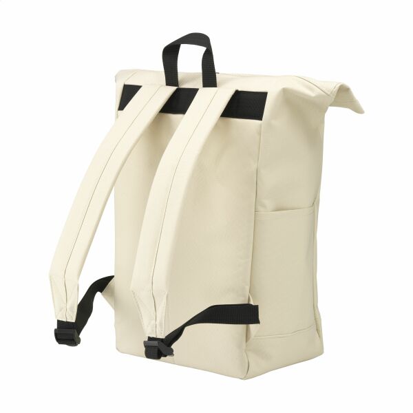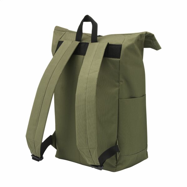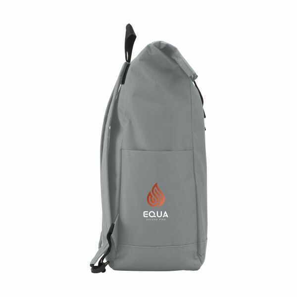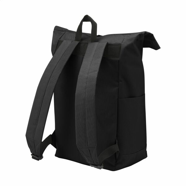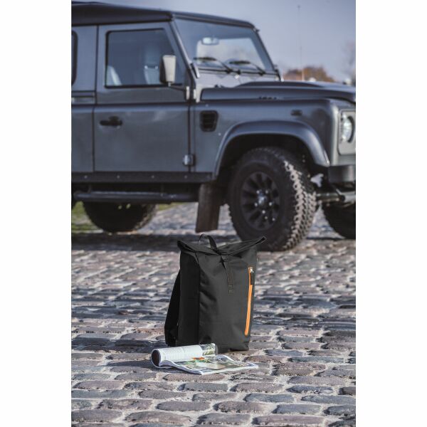 Stoere, praktische urban ‘roll-top’ rugzak van sterk 600D polyester met waterbestendige PVC binnenzijde, gedeeltelijk nylon gevoerd. De rugzak heeft één groot binnenvak, een insteekvak aan beide zijdes en een groot ritsvak aan de voorzijde. Met foam rugzijde voor meer draagcomfort, gewatteerde, en verstelbare schouderriemen. Met draaglus en een rolsluiting met kliksysteem aan de bovenzijde. De perfecte tas voor dagelijks gebruik. Inhoud ca. 18 liter.