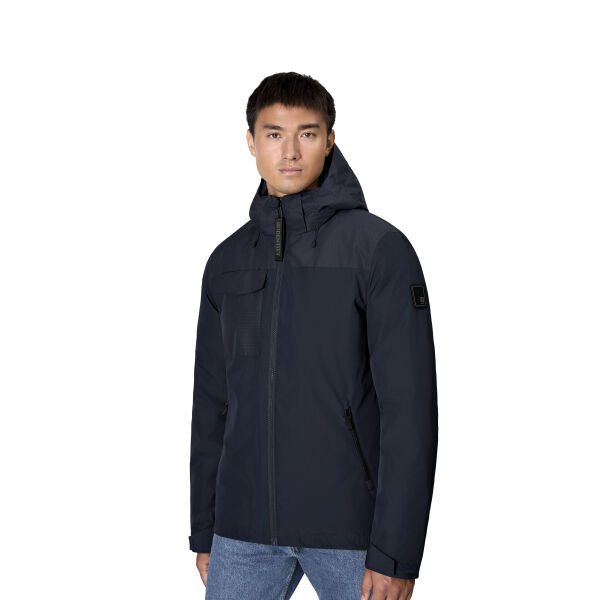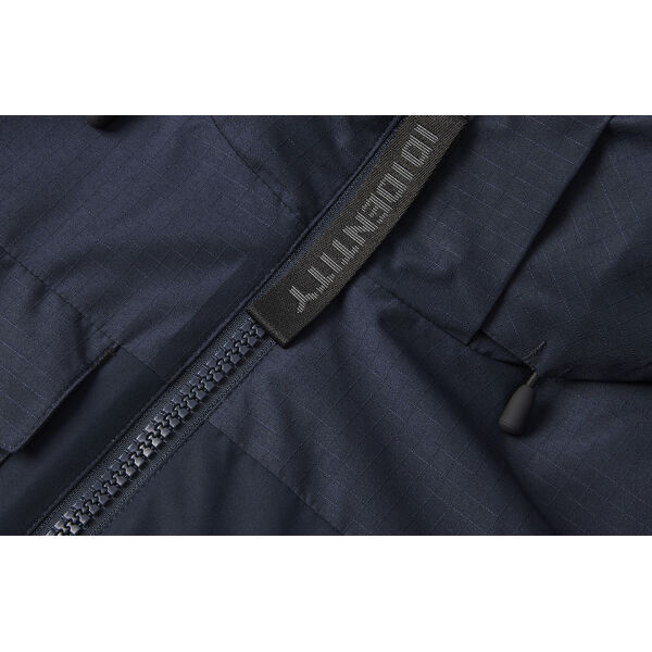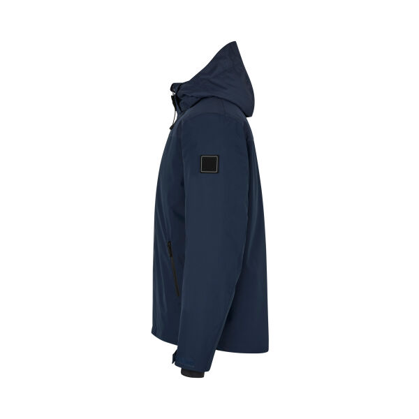 Casual and stylish winter jacket in ID Tech® recycled polyester quality with water-repellent, fluorine-free BIONIC-FINISH® ECO. THERMOLITE® T-DOWN filling made from recycled PET material. Collar in soft material and detachable hood. Sleeves with adjustable closures and inner wind cuffs. Lining in stretch mesh for extra mobility and comfort. Front zipper for attaching a print.
