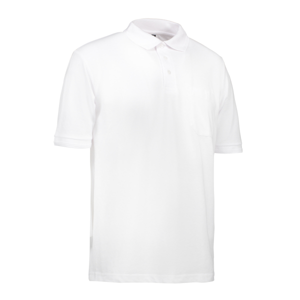 Klassiek poloshirt in piqué kwaliteit met borstzak en geribbelde details op kraag en mouwen.